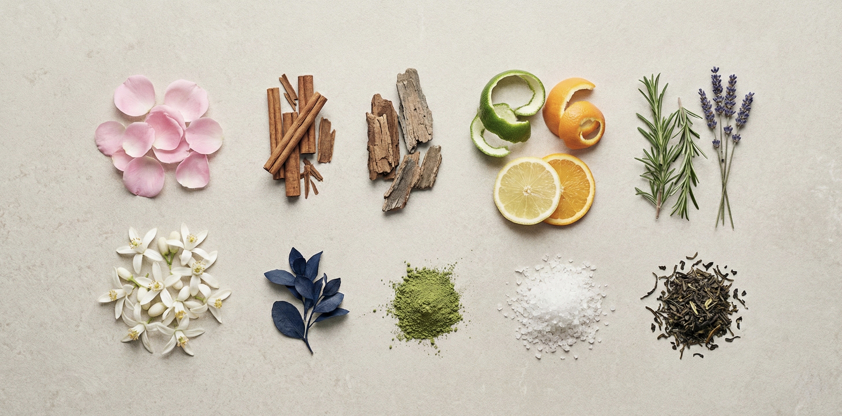 依香調選香,是最快找到「對的氛圍」的方法。這裡把氣味整理成 5 個香氣家族:花香、柑橘/果香、木質/森林、清新/海洋、甜點/美食。從你想要的感受出發,再看代表植物線索,選香會更直覺。